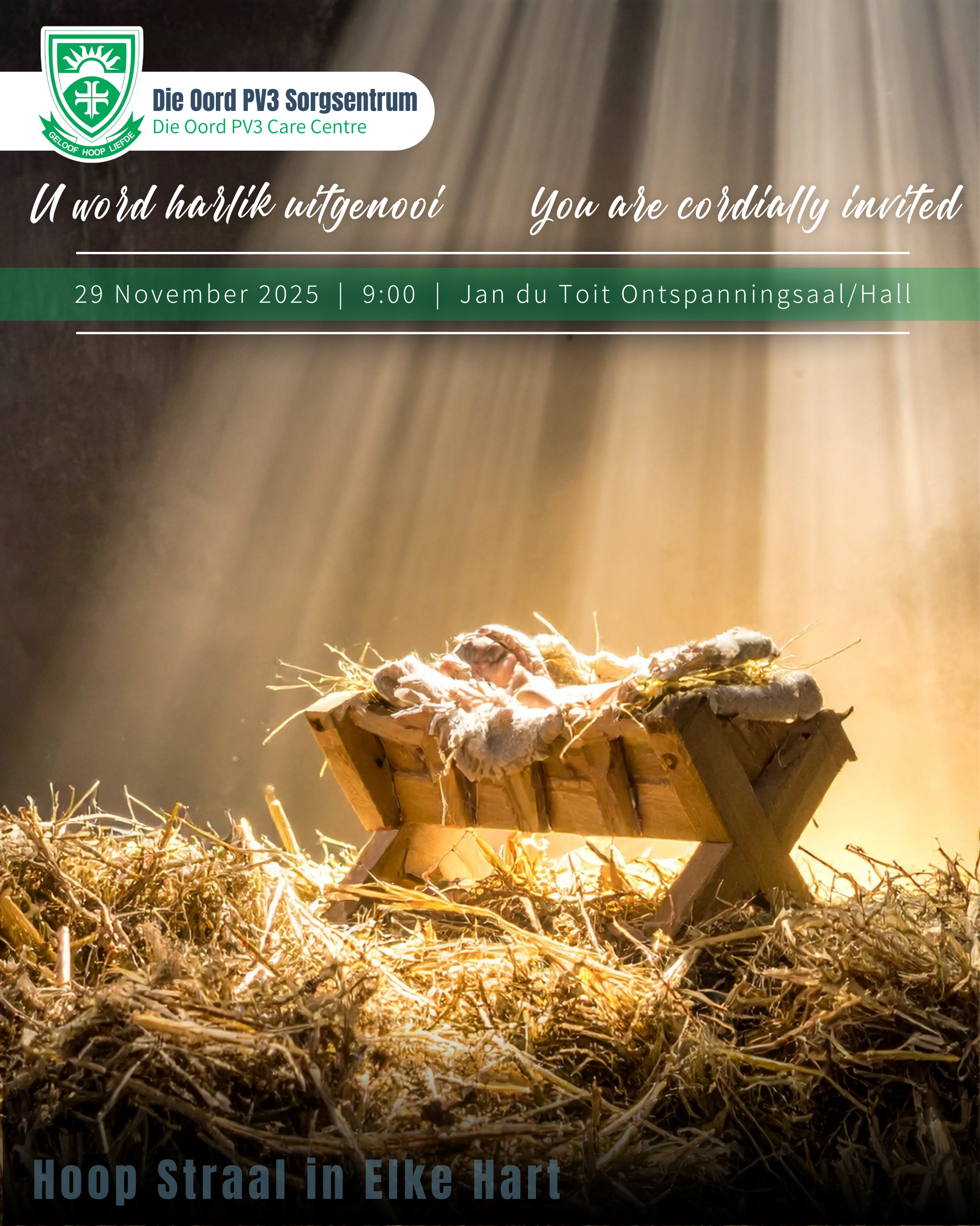 Die Oord PV3 is a sanctuary for intellectually challenged adults, offering a lifetime of care in a home-like environment. Located near Hartbeespoort Dam, we provide secure housing, medical care, and meaningful work activities. Our mission is to offer a safe haven and our vision is to be self-sustainable while expanding our capacity. We’re more than a facility; we’re a community that cares.